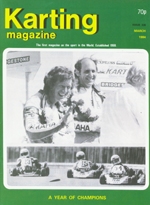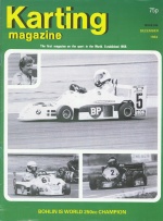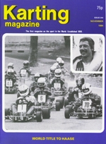 Jorn Haase, winner of the World Champs at Liedolsheim, was the cover photo. Mike Wilson led the World final until his motor blew. The John Mills kart firm celebrated their silver jubilee after 25 years of successful trading. We reported on the new TKM BT82 piston-timed motor from which roots was eventually launched the highly popular TKM mono-make class. New karts introduced included the S-XK3 from Kartpro and a gearbox class frame from Aero.