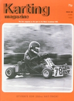 Junior Britain driver Mark Hawkes was on the front cover. Although Mike Wilson was fastest in the time trials at Jesolo, Bugatti won the final after Mike broke his brake pedal. Dunlop released hard to come by technical info on their tyres. For the first time the World Cup was moved from its traditional Morecambe venue to Donington, being won by Brian Heerey. Sospiri beat future F1 driver Modena at the European Championships at Fano in Italy. 500 youngsters took part in the Schools enduro champs.